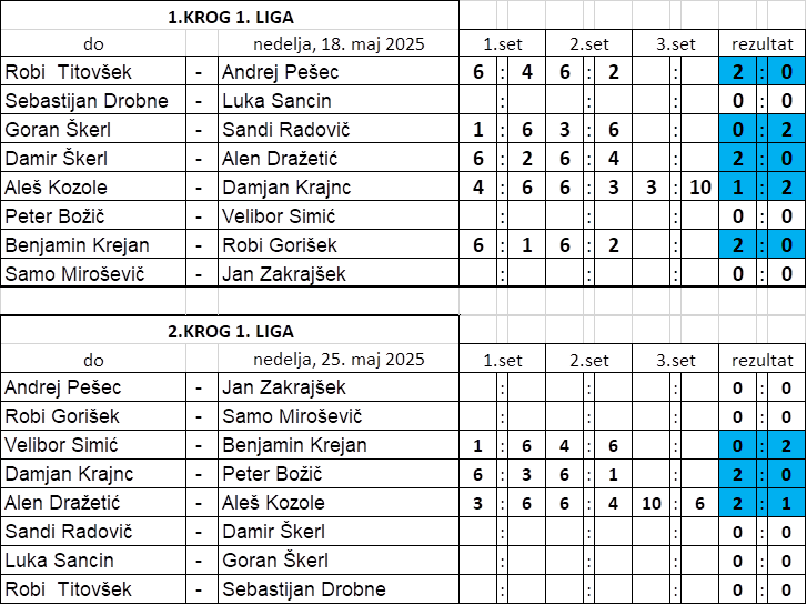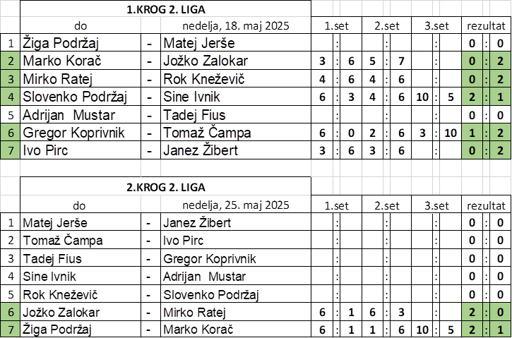 | 1 | Slovenko Podržaj | Peter Božič | : | Sine Ivnik | Edvard Trbovc | 9 | 4 |