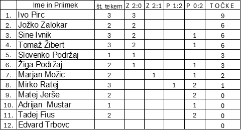 Verjetno zaradi malo odigranih dvobojev tudi ni bilo navdihujočih opisov posameznih dvobojev. Naj omenim samo, da je s pomočjo pametnih naprav nekomu uspelo ostati pri zdravih močeh.