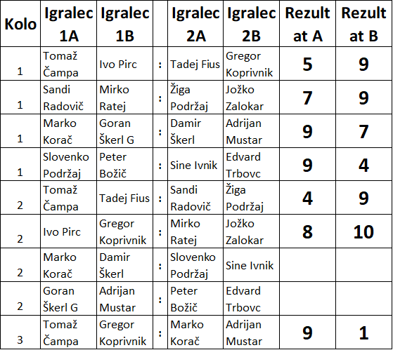 Grega Koprivnik & Tomaž Čampa Vs Marko Korač & Adrian Mustar 9 : 1